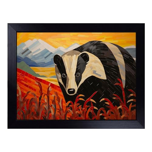 Cushioned Lap Tray with Bean Bag Base for Laptop & Eating – A Badger Portrait Vol.1 Design | Padded Lap Desk for Sofa, Bed & Work | Portable TV Dinner & Breakfast Tray, Easy Clean Surface