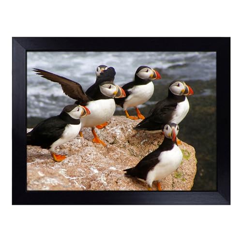 Cushioned Lap Tray with Bean Bag Base for Laptop & Eating – Atlantic Puffin Birds Art Design | Padded Lap Desk for Sofa, Bed & Work | Portable TV Dinner & Breakfast Tray, Easy Clean Surface
