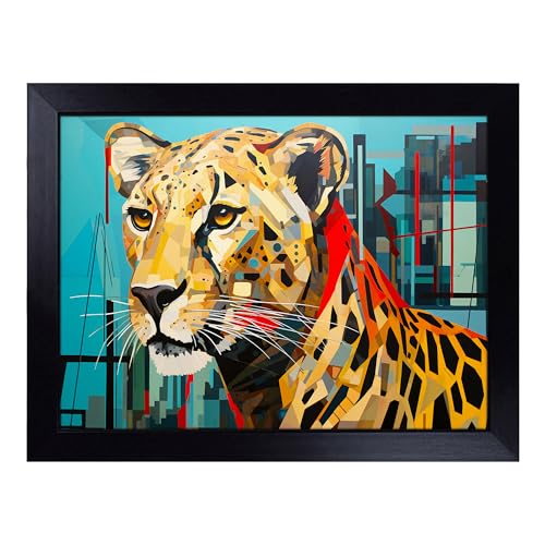 Cushioned Lap Tray with Bean Bag Base for Laptop & Eating – Cheetah Constructivism Design | Padded Lap Desk for Sofa, Bed & Work | Portable TV Dinner & Breakfast Tray, Easy Clean Surface
