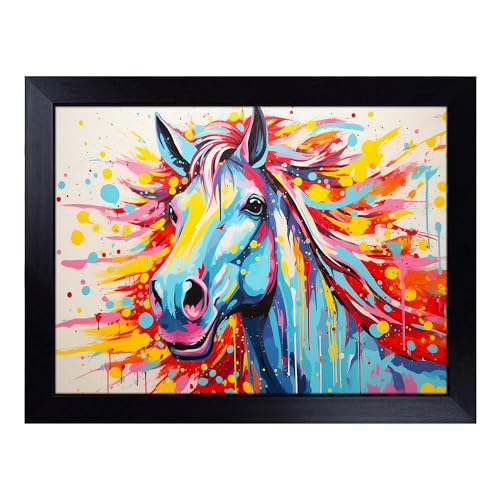 Cushioned Lap Tray with Bean Bag Base for Laptop & Eating – Horse Pop Art Design | Padded Lap Desk for Sofa, Bed & Work | Portable TV Dinner & Breakfast Tray, Easy Clean Surface