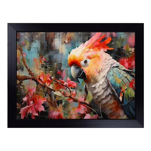 Cushioned Lap Tray with Bean Bag Base for Laptop & Eating – Cockatoo Abstract Design | Padded Lap Desk for Sofa, Bed & Work | Portable TV Dinner & Breakfast Tray, Easy Clean Surface