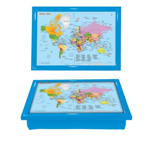 World Map Cushioned Lap Tray Bean Bag Padded Dinner Serving Cushion Laptop Holder Breakfast LapTray ( BLUE )