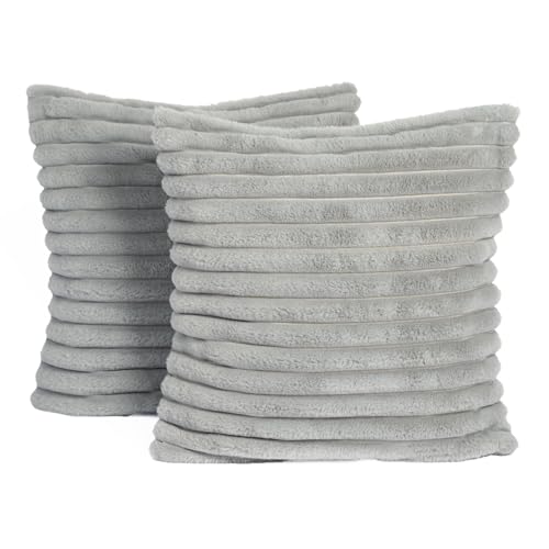 OHS Faux Fur Grey Cushions Ribbed, Decorative Throw Pillows for Sofa Cushions Living Room Scatter Cushions Covers Smooth Soft Comfy Home Decor, Pack of 2 - Grey