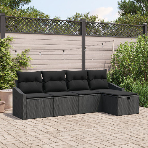 vidaXL Lounge Set with Cushions 5 Pieces Black Faux Rattan 3359262