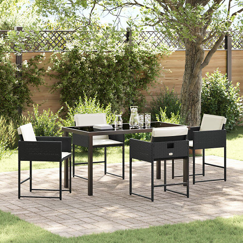 vidaXL Set of 5 Garden Table with Cushions Black Poly Rattan