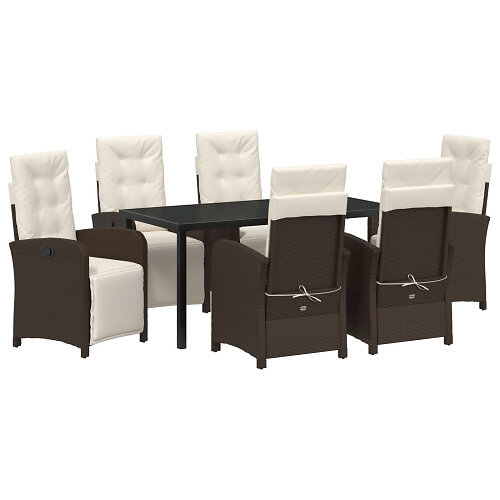 vidaXL 7 Piece Outdoor Dining Set with Cushions Poly Rattan Brown