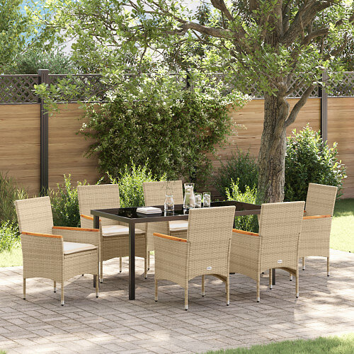 vidaXL Lounge Set 9 Pieces with Cushions Beige Poly Rattan Acacia