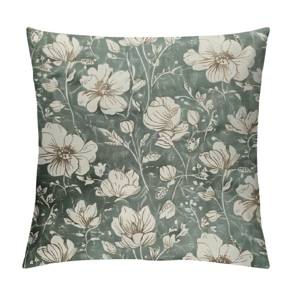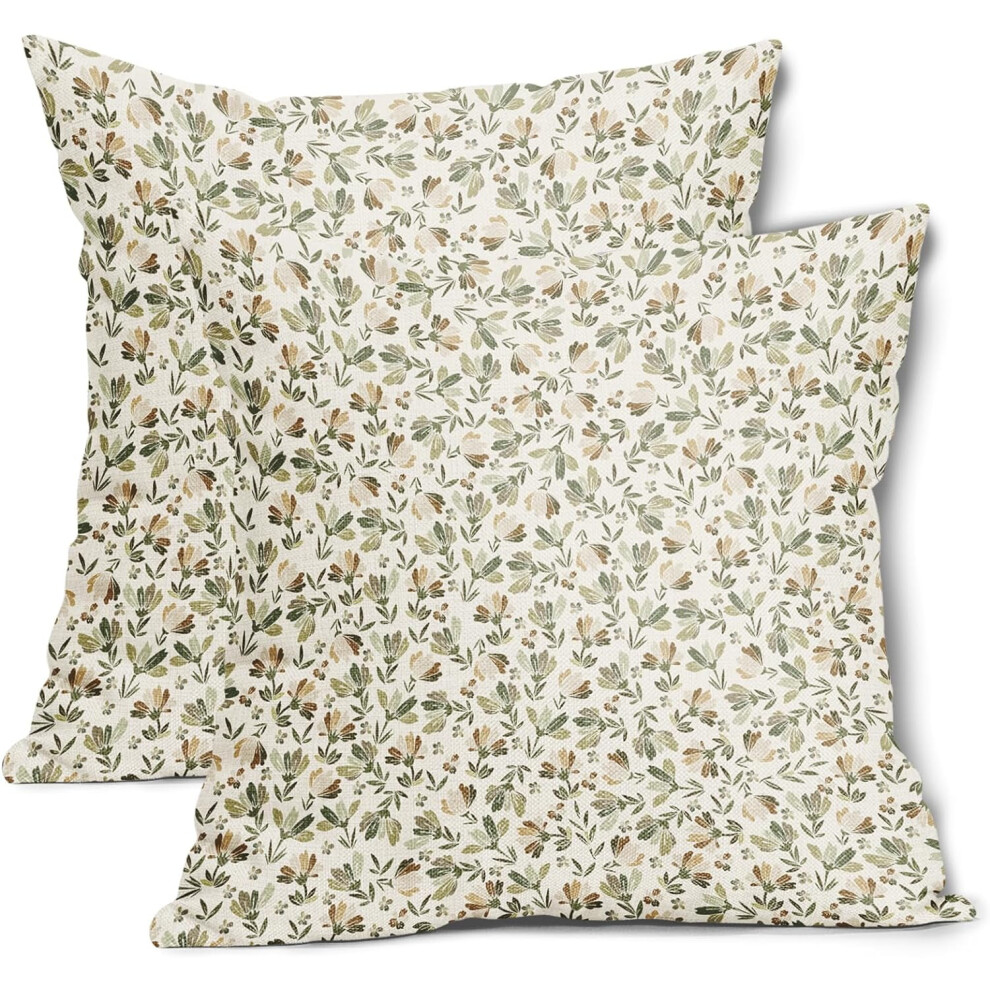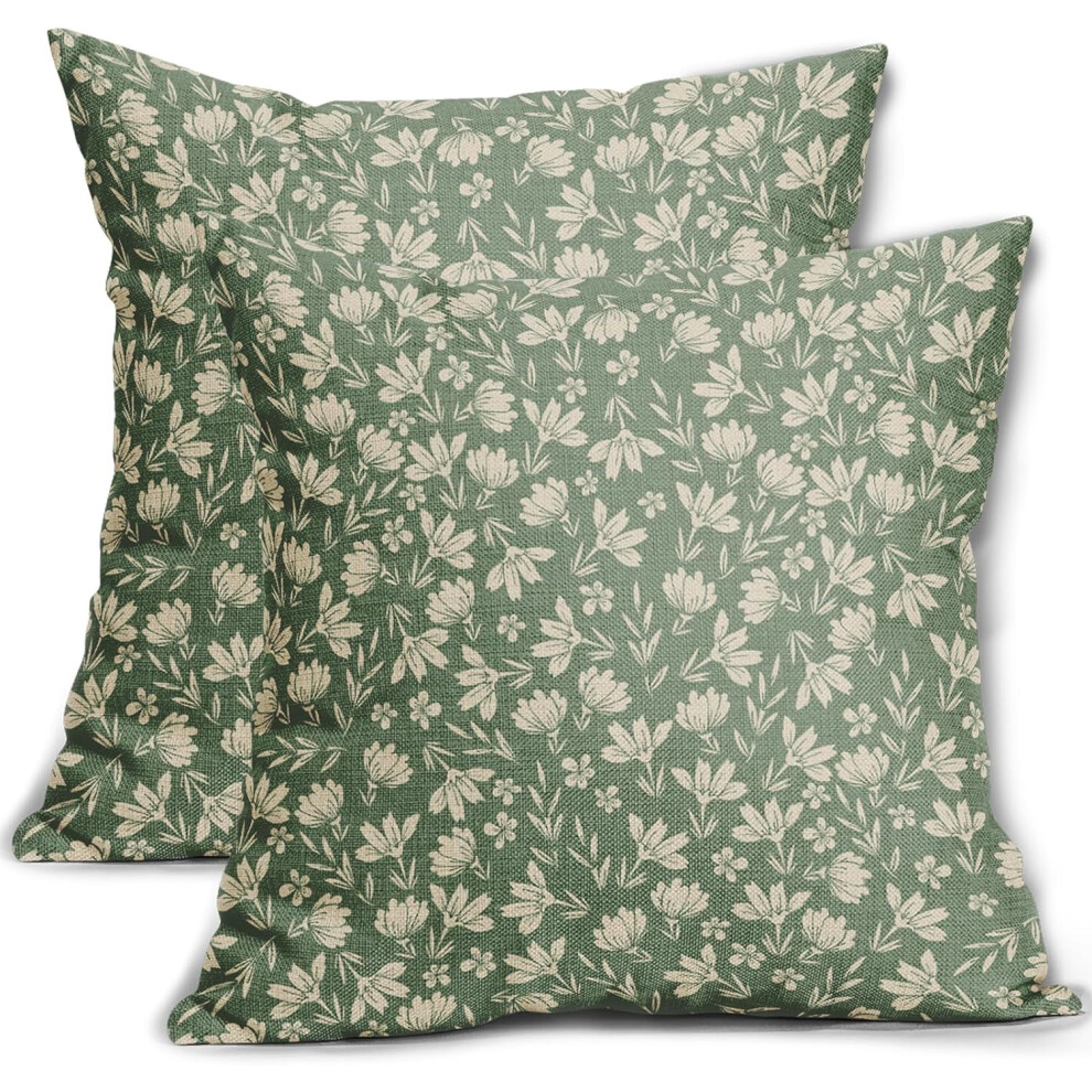 Spring Sage Green Pillow Covers 16x16, Set of 2, Vintage Floral Rustic Design, Outdoor & Indoor Decor, Compatible with Standard Cushions