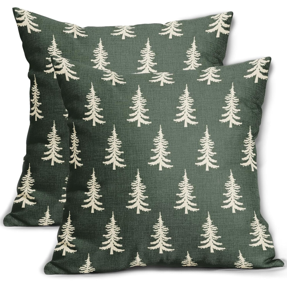 Christmas Pillow Covers 20x20, Set of 2, Dark Sage Green Xmas Tree, Rustic Farmhouse Decor, Compatible with Standard Cushions