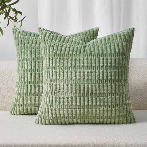 Topfinel Sage green Cushion Covers 45cm x 45cm,Corduroy Decorative Fluffy Pillows Cases,Cushions Cover 18x18 inches with Invisible Zipper for Sofa Bed Livingroom Bedroom,Pack of 2
