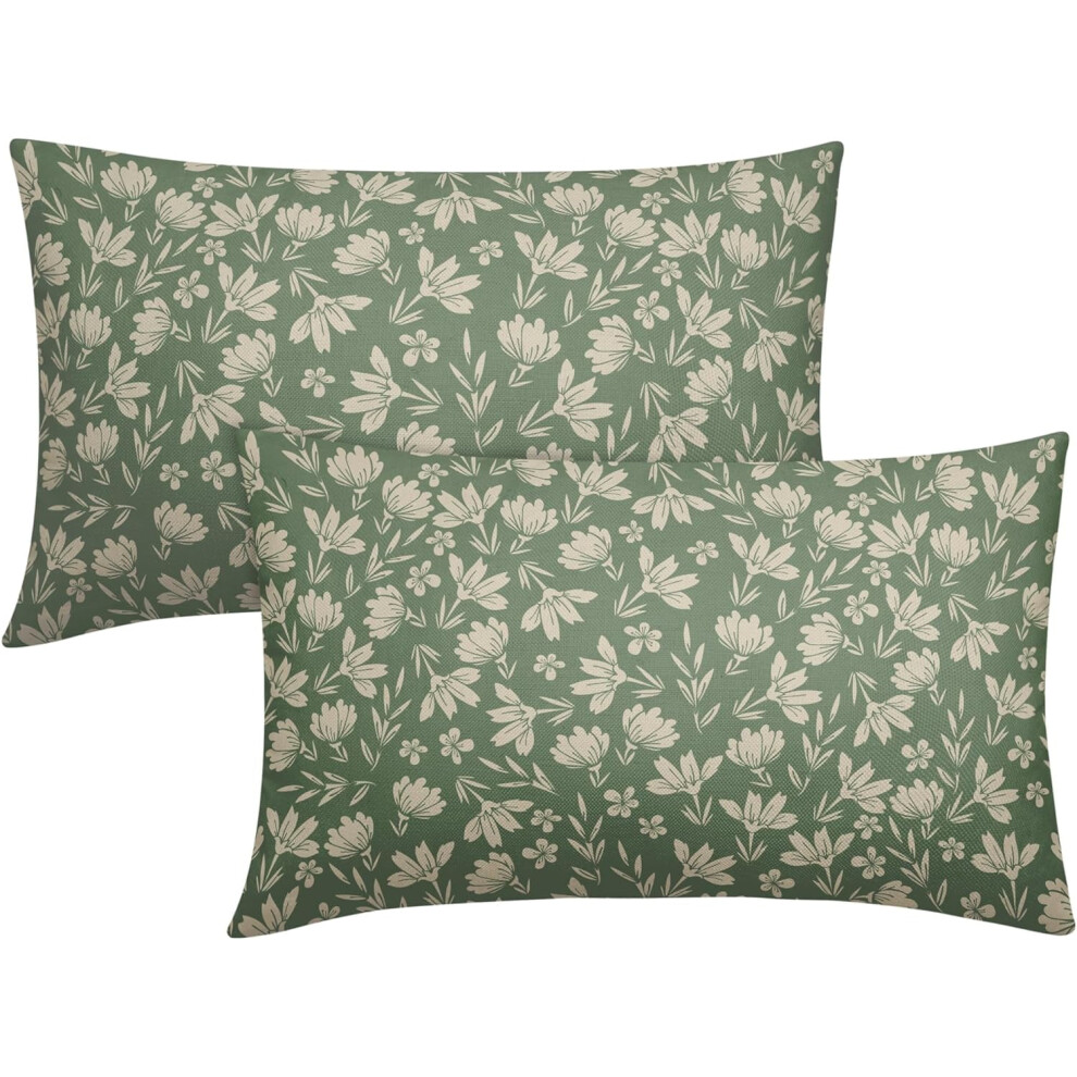 Spring Sage Green Pillow Covers 12x20, Set of 2, Vintage Floral Rustic Design, Outdoor/Indoor Decor, Compatible with Standard Cushions