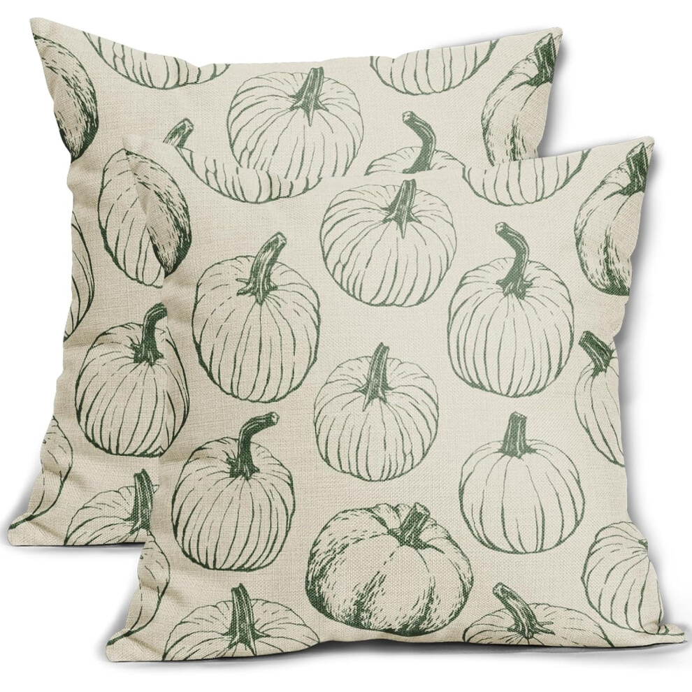Sage Green Pumpkin Fall Pillow Covers 18x18, Set of 2, Autumn/Thanksgiving Harvest Print, Farmhouse Decor, Compatible with Standard Cushions