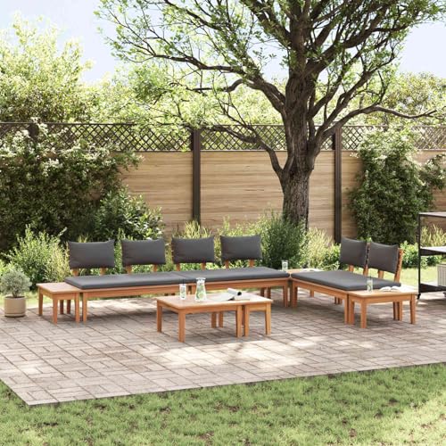Vopese 9 Piece Garden Dining Set, Modern Brown Solid Acacia Wood Outdoor Table and Chairs with Cushions ZSSCJ-UK3334780UK for Kitchen Living Room Garden Use