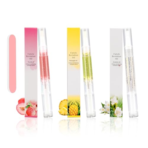 Cuticle Oil Pen,3PCS Nutrition Oil Pen with Nail File,Cuticle Oil for Nails with Natural Ingredients,Nail Oil Cuticle for Repairing Cracked and Dry Nail(Pineapple & Peach & Jasmine Flavor)