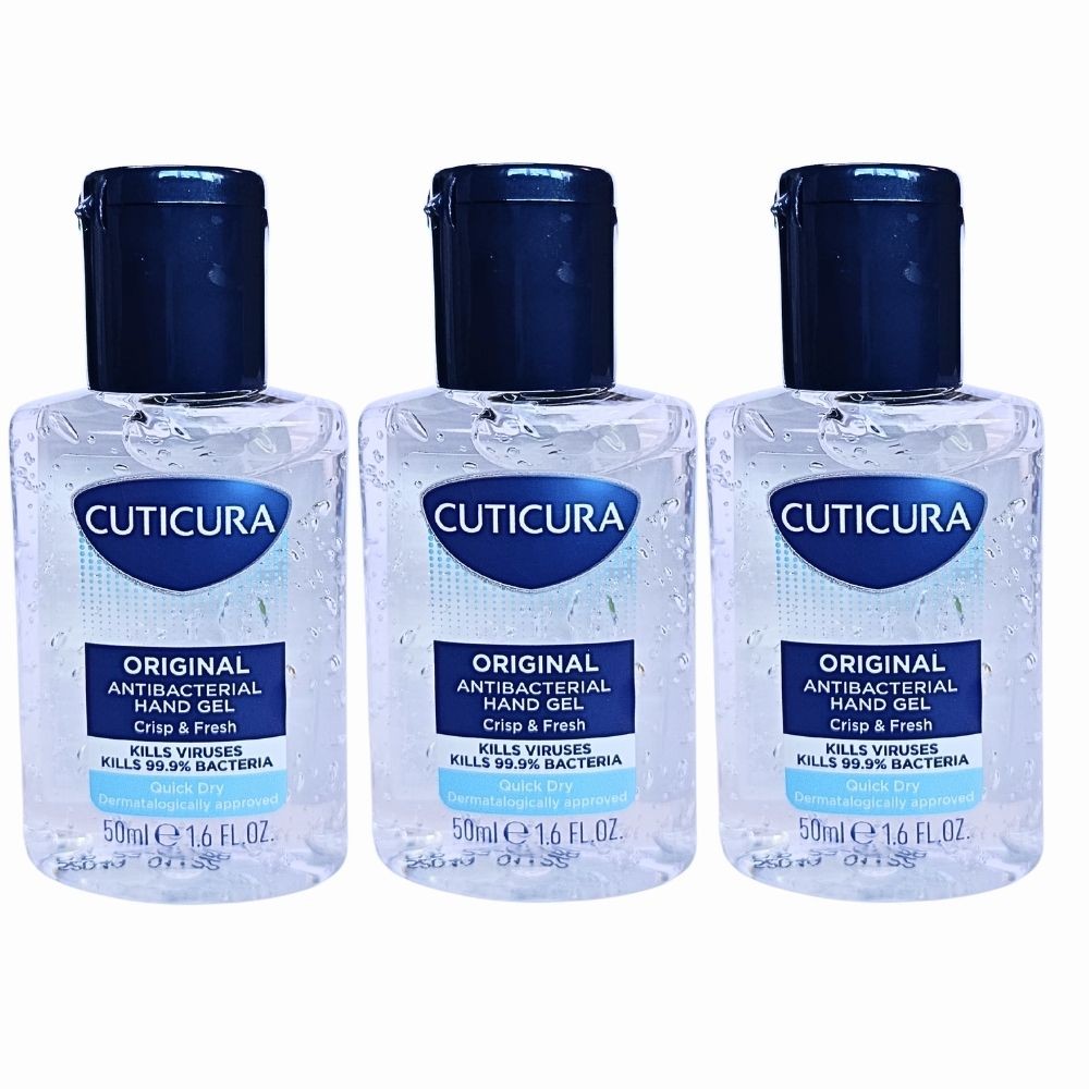 3x Cuticura Original Antibacterial Hand Gel 50ml Hand Sanitiser Pocket Size