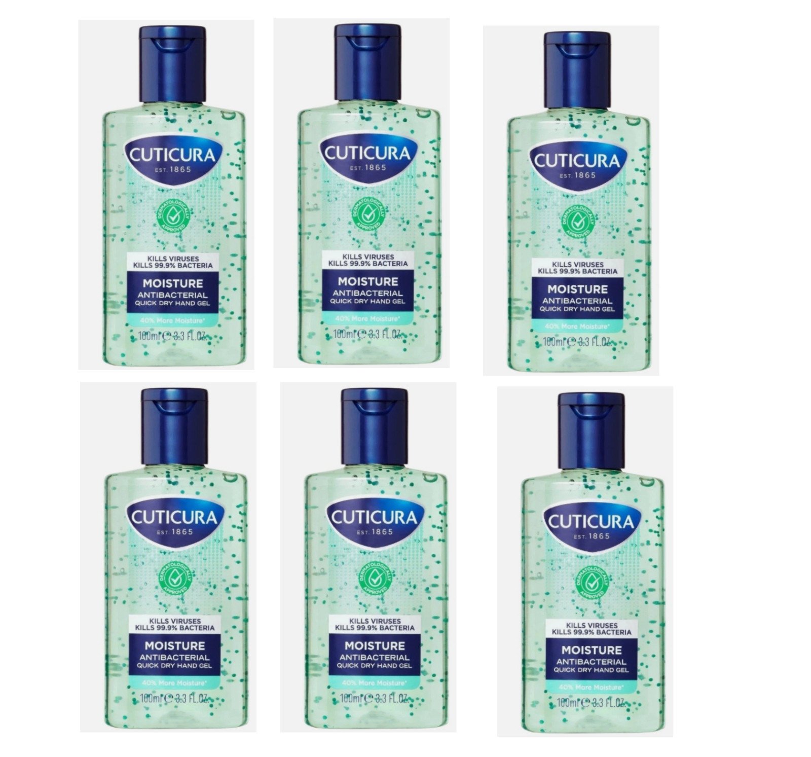 6 x 100ml Cuticura Quick Dry Hand Sanitiser Moisture Gel -kills 99% bacteria