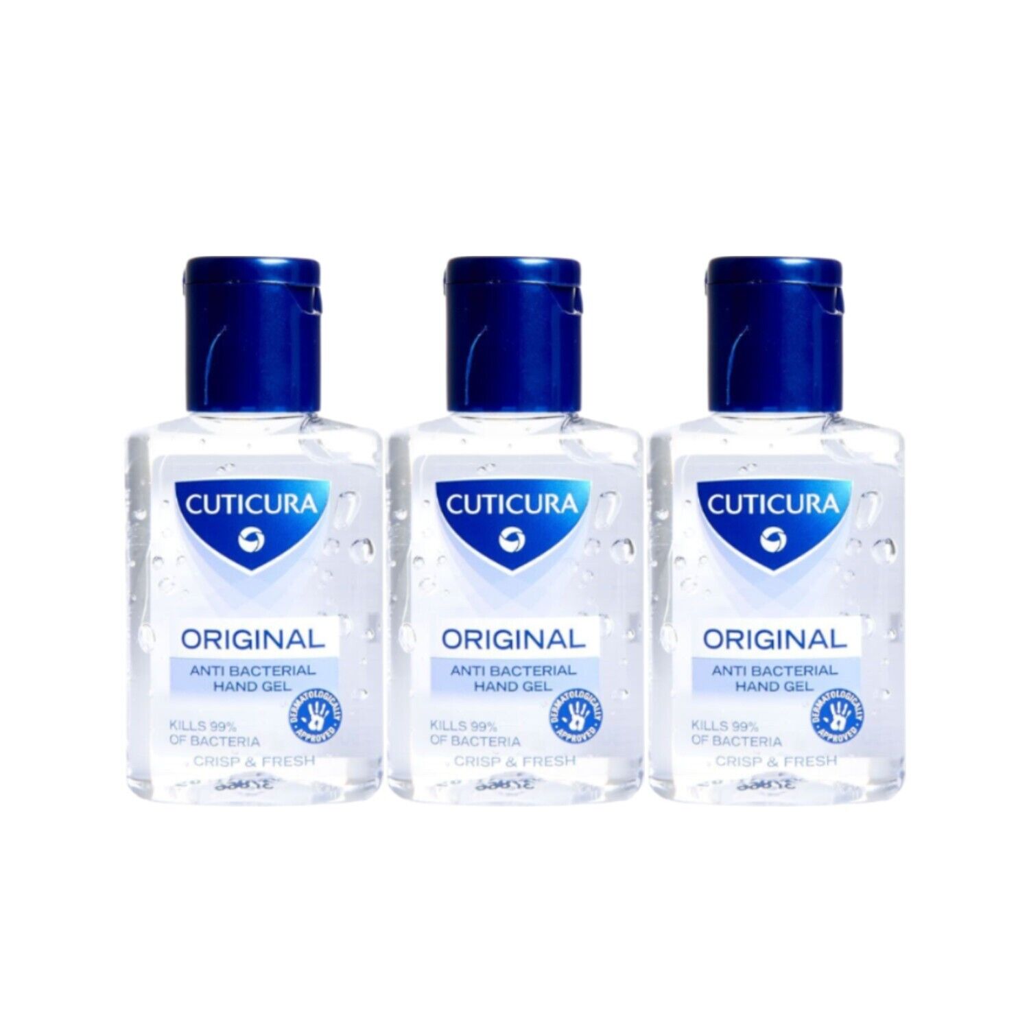Cuticura Antibacterial Hand Gel Crisp & Fresh 50ml Travel Sanitiser 3 Pack