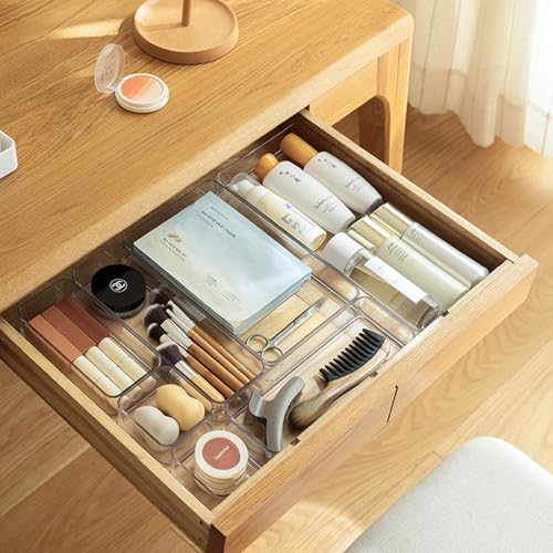 Fcmeavo PET Cutlery Drawer Organiser Tray, Combinable Drawer Insert for Kitchen – Utensil Divider & Cutlery Holder for Spoons, Forks, Knives – DIY Modular Storage for Kitchen Drawers(Transparent,S)