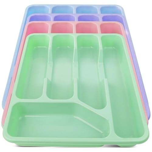 NJTHNTJR 4x Flatware Tray with Lid,Utensil Storage with Lid Plastic Cutlery Tray,Cutlery Drawer Organizer Utensil Container E