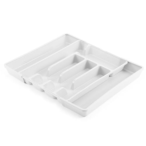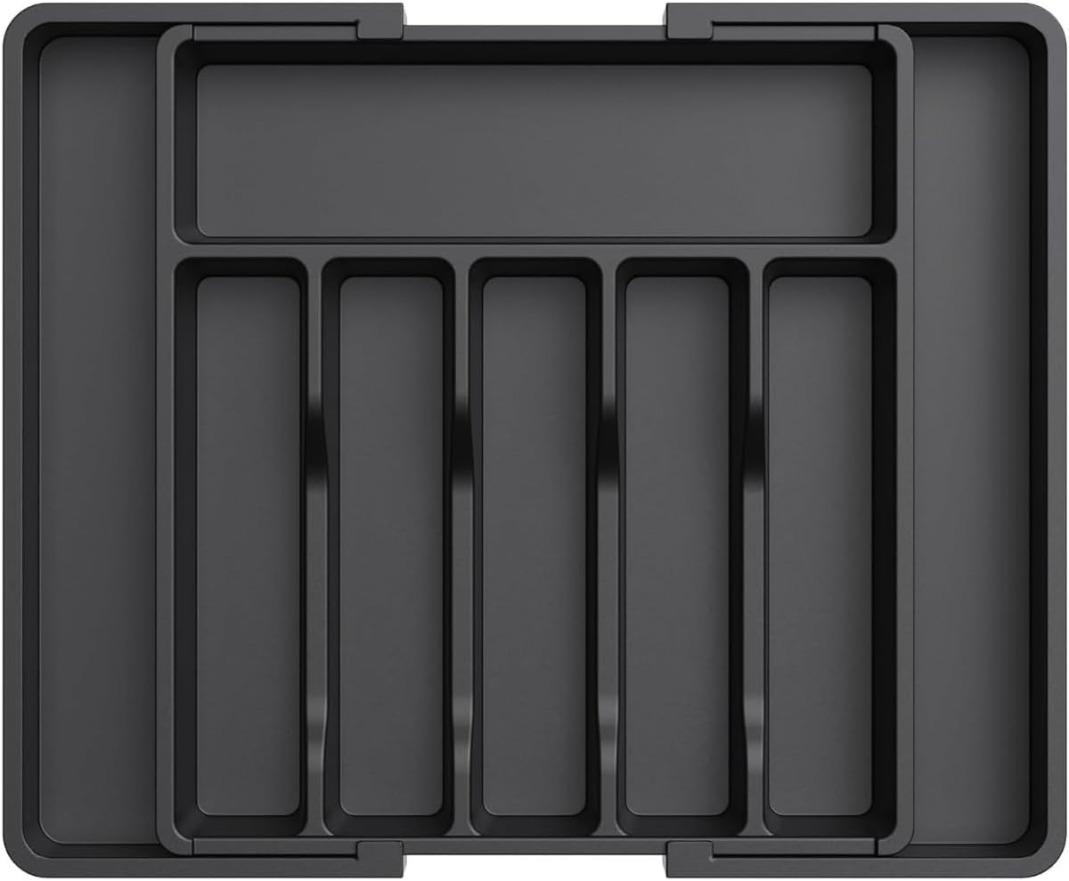 URBN-CHEF 7-Section Extendable Plastic Cutlery Tray, Kitchen Drawer Organiser with 5-to-7 Compartments for Utensils & Larger Tools - Versatile, Durable, Easy-to-Clean & Adjustable to Reduce Clutter