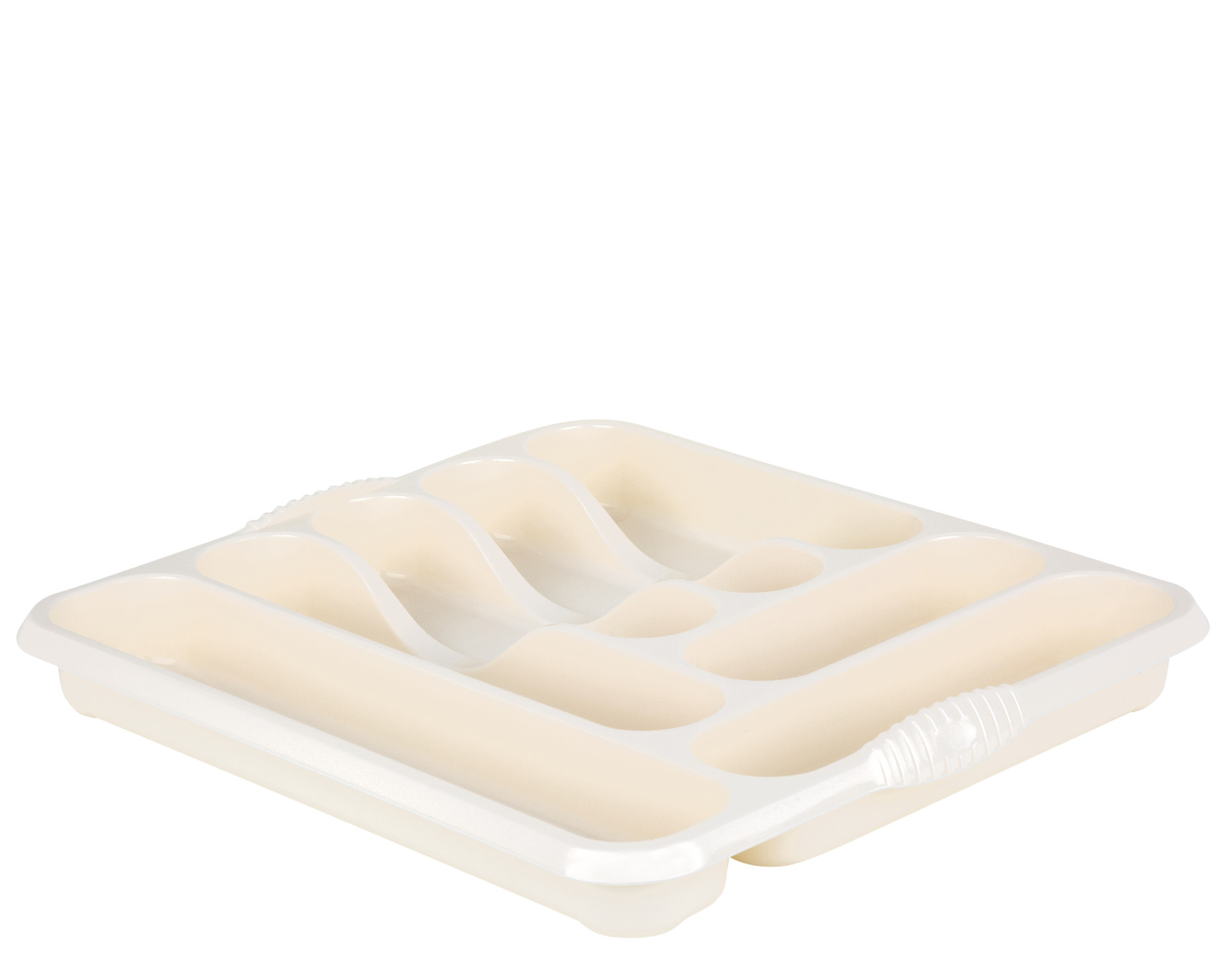 Large Cutlery Tray 7 Compartment Plastic Drawer Tidy Storage for Home Soft Cream