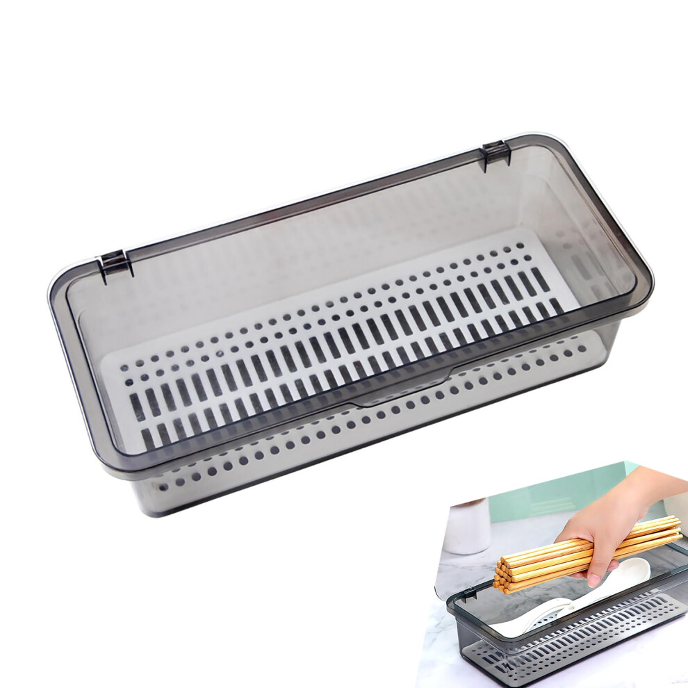 Kitchen Chopstick Organizer Holder - Drainable Dustproof Cutlery Tray for Office Drawer, White, Compact Design