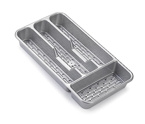 Small Tier Cutlery Tray Classic in Silver | BPA Free Plastic Drawer Organizer with 4 Compartments | Durable Kitchen Storage for Spoons Forks Knives Kids Cutlery | Space Saving Design