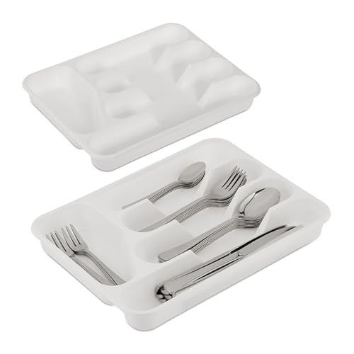 Relaxdays Set of 2 Cutlery Trays, 4 x 24.5 x 32.5 cm, 5 Compartments, Organiser, Kitchen Drawer Insert, Plastic, White