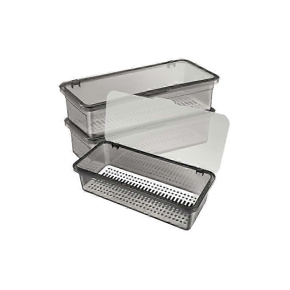 Set of 3 plastic cutlery trays with lids, cutlery organizer, countertop storage containers