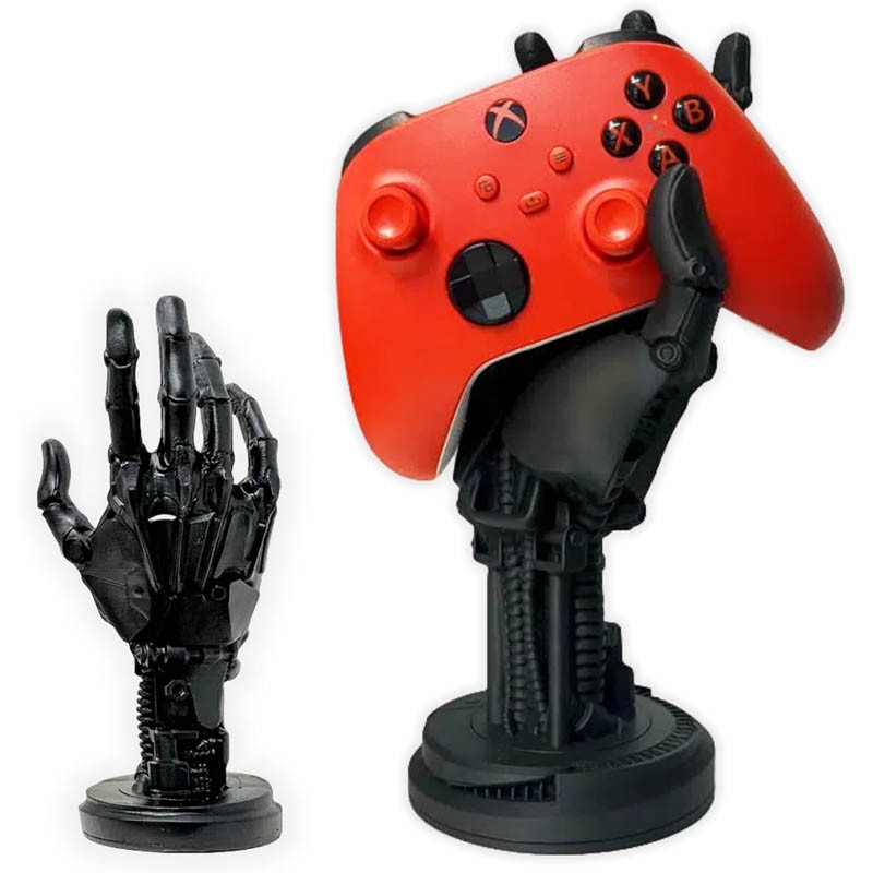 Cyberpunk Gaming Controller Stand with Futuristic Resin Mechanical Hand, Industrial SciFi Decor