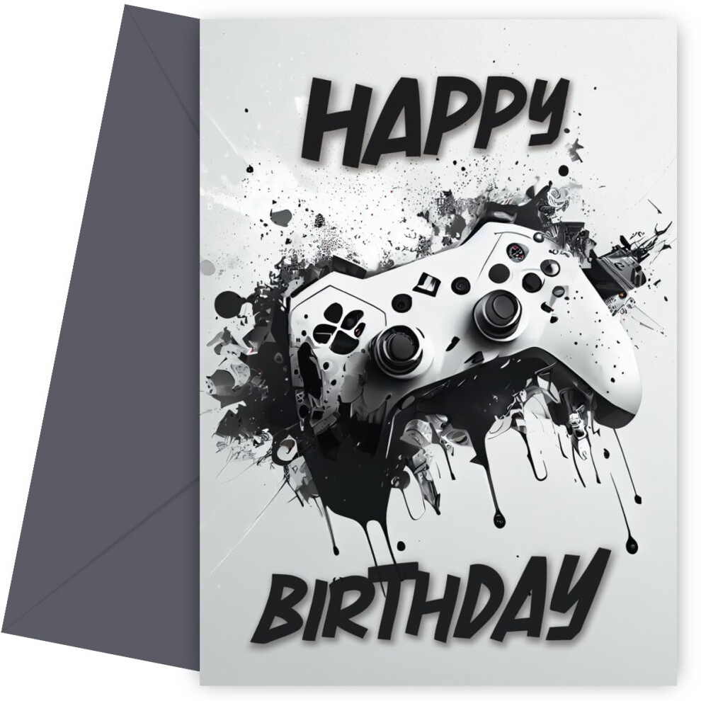 White Cyberpunk Games Controller Birthday Card for Boys! Kids card for Great Nephew,