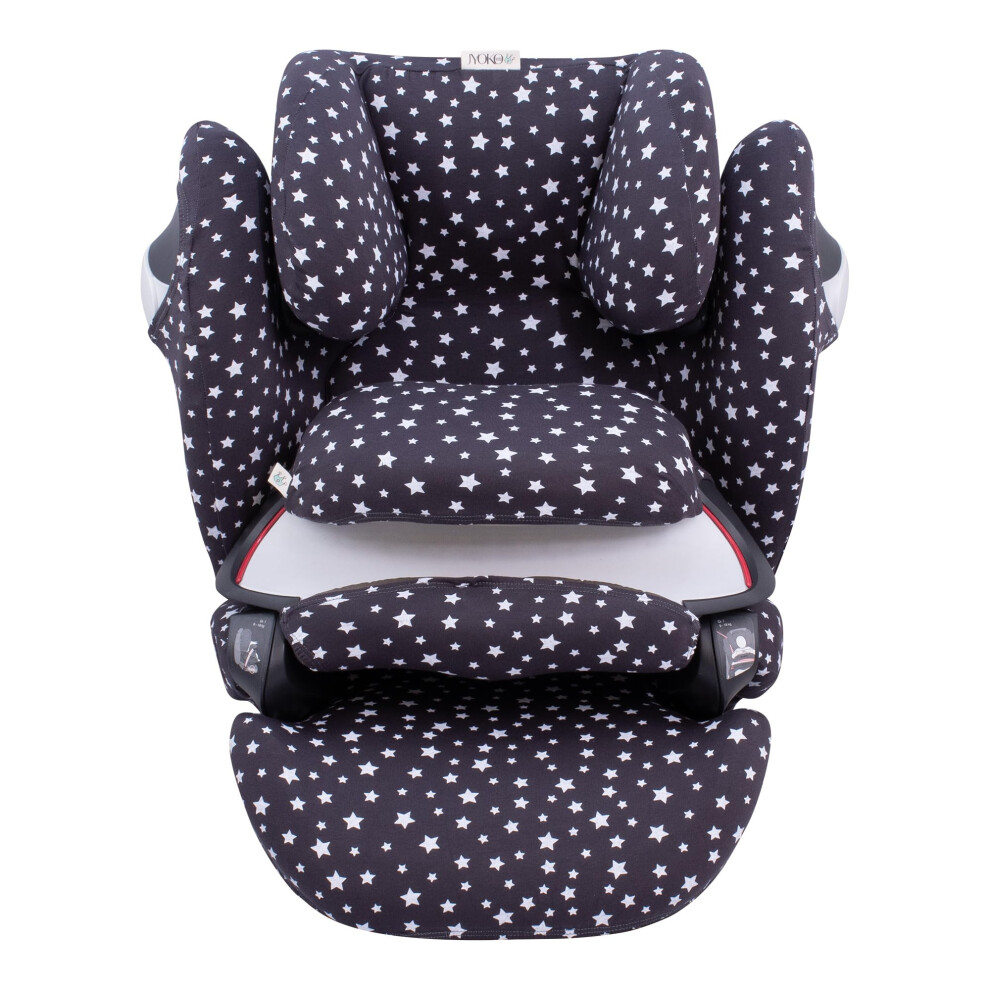 JYOKO KIDS Baby car seat cover liner made cotton compatible with Cybex Solution M and Pallas B - Fix (White Star)