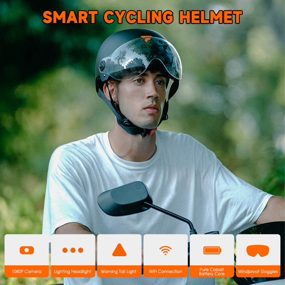POENVFPO 1080p Smart Cycle Helmet, Front Camera Smart Cycle Helmet Street for Adults Men Women Cycling (Black