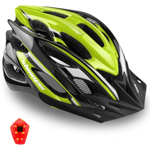 Shinmax Bike Helmet with Safety LED Light Cycle helmet for Men Women Bicycle Helmet with Detachable Magnetic Visor & Liner Breathable MTB Helmet Adult Lightweight Adjustable Size Cycling Helmet NR-096