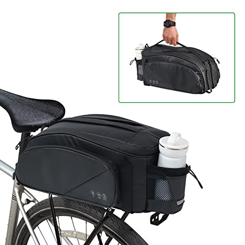 NDakter Bike Bags, 10L Bicycle Pannier Bag for Cycle Rear Rack Waterproof 3 in 1 Ebikes Trunk Bag, Reflective Electric Bike Saddle Panniers Bag with Shoulder Strap (10L EVA Hard Shell Waterproof)