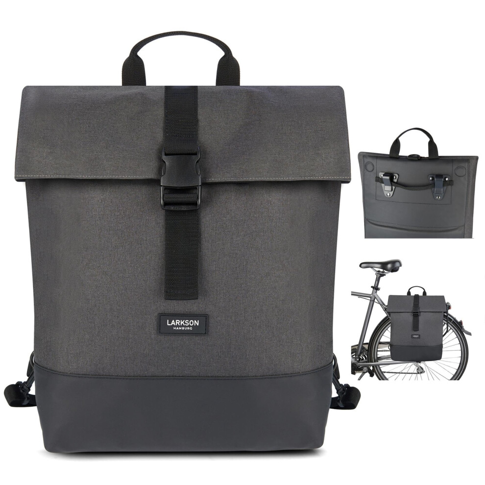 LARKSON Bike Pannier Bags Anthracite - Tammo Bike - 2 in 1 Cycle Backpack & Bicycle Bag for Rear Carrier, Made of Recycled Material - Water-Repellent