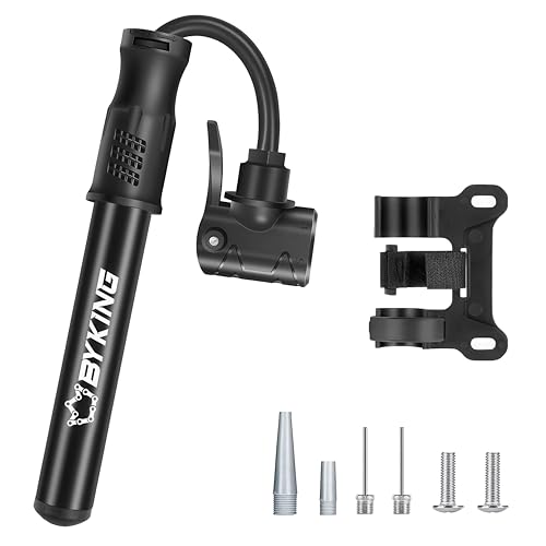 BYKING Portable Bike Pump, Air Pump for Bicycle, Balloon, Tyres, Ball, Airbed and Toys Inflatables, Cycle Pump with Presta. Schrader and Dunlop valve, Attachment (Football Pump Needle and More)