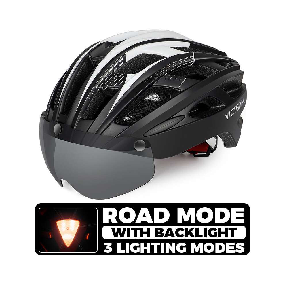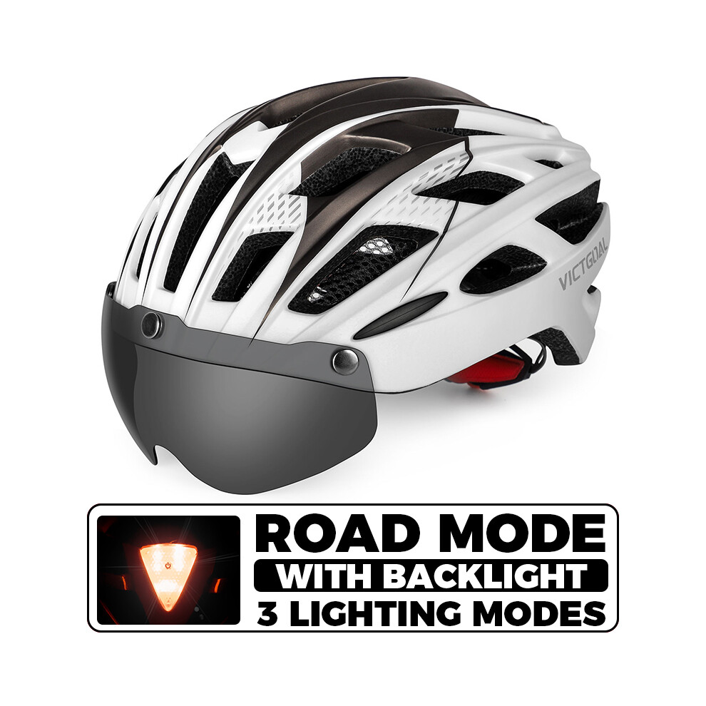 (CHINA, White Helmet) Adults Bike Helmet Bicycle Helmet with Detachable Magnetic Goggles & Safety LED Rear Light Cycling Helmets Men Women