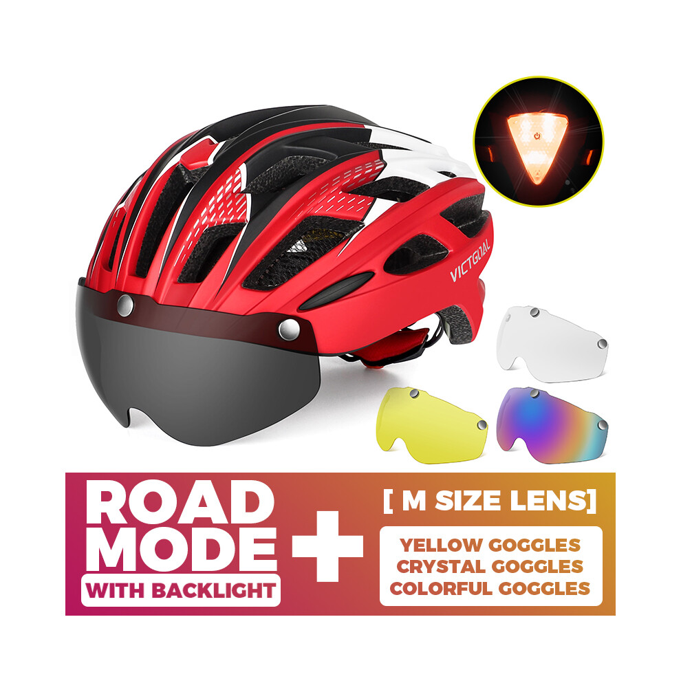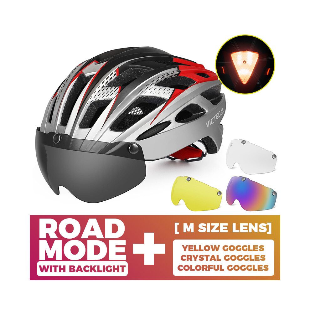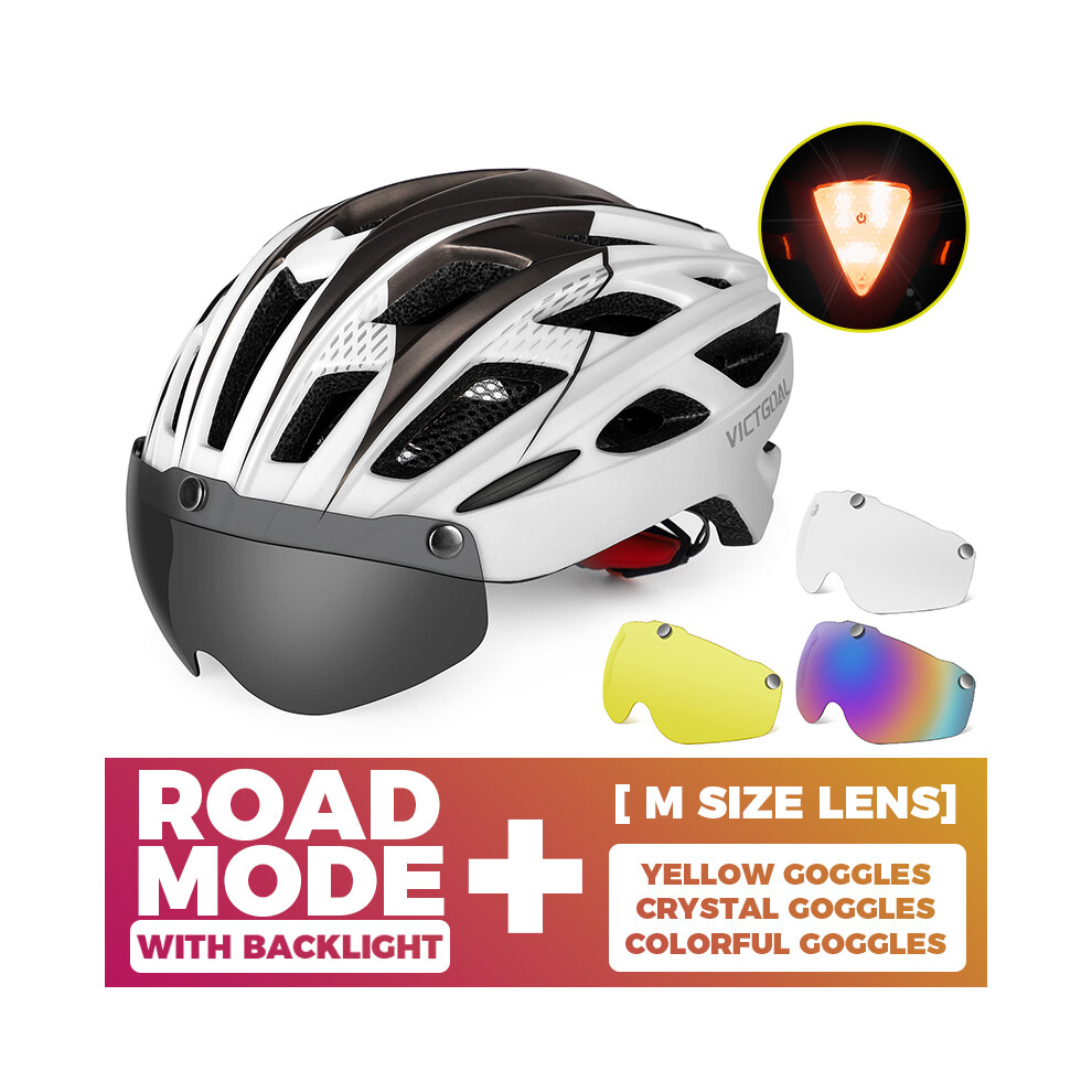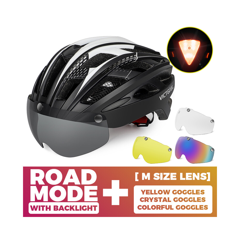 (CHINA, 3PCS Lenes M) Adults Bike Helmet Bicycle Helmet with Detachable Magnetic Goggles & Safety LED Rear Light Cycling Helmets Men Women
