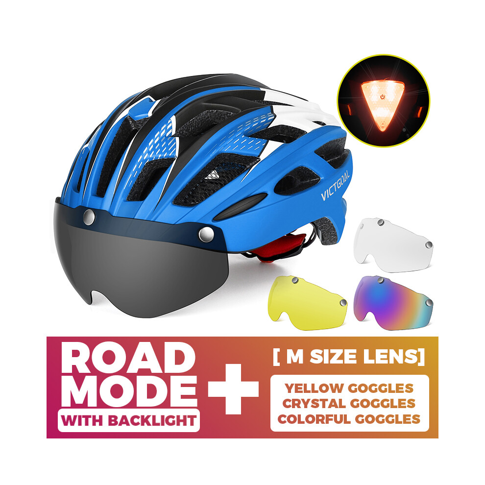 (CHINA, Blue-3PCS) Adults Bike Helmet Bicycle Helmet with Detachable Magnetic Goggles & Safety LED Rear Light Cycling Helmets Men Women