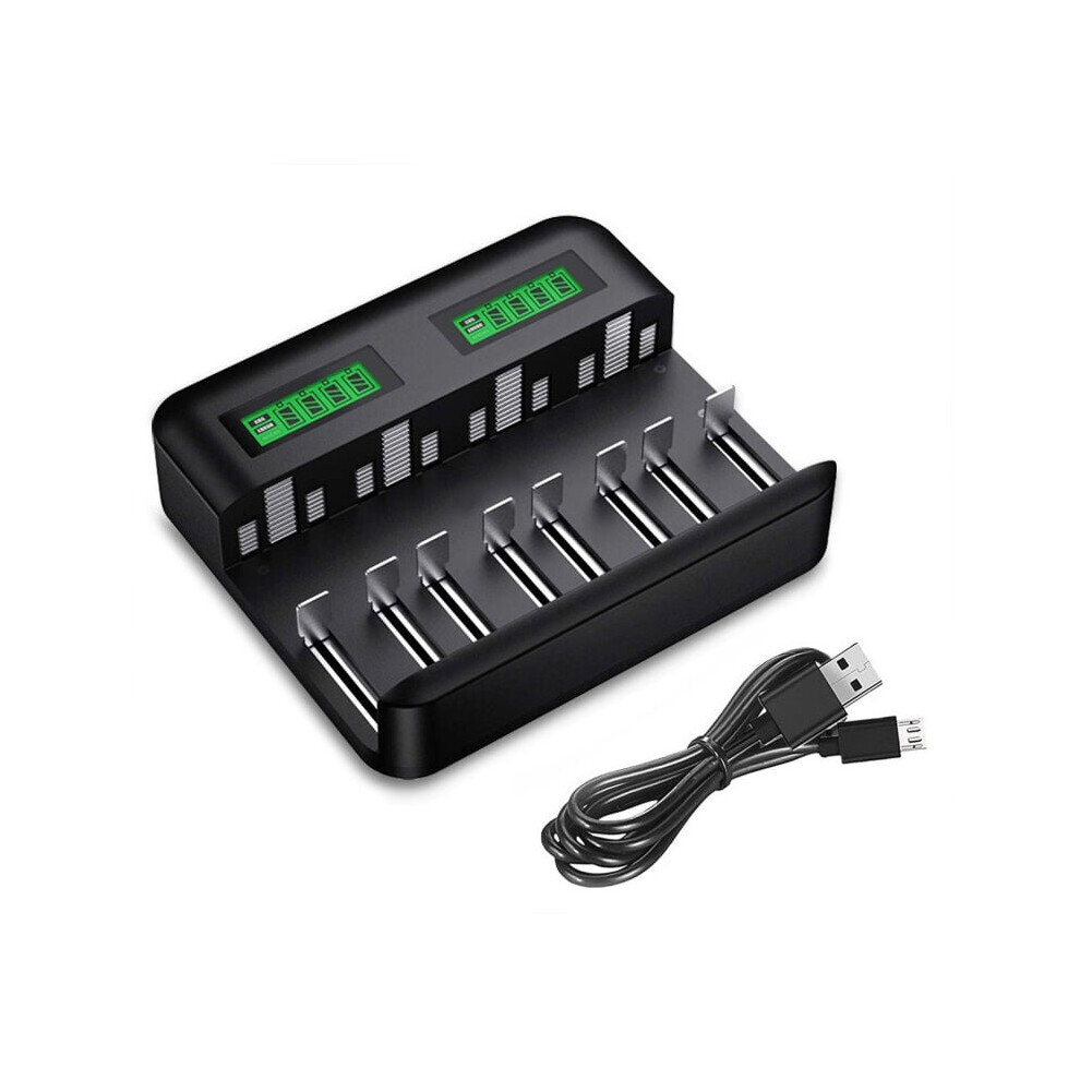 LCD Universal Battery Charger - 8 Bay AA /AAA /C /D Battery Charger for Rechargeable Batteries with 2A USB Port