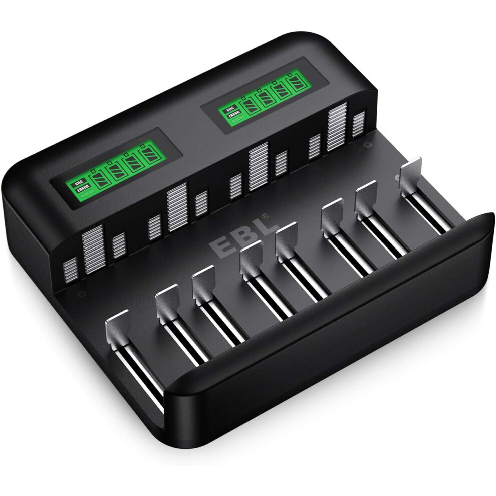 EBL LCD Universal Battery Charger - 8 Bay AA AAA C D Battery Charger for Recharg