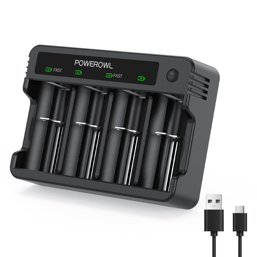 POWEROWL AA AAA C D Battery Charger, Universal Battery Charger for Ni-MH Rechargeable Batteries (USB Fast Charging, Input DC 5V 2A, Independent Slot)