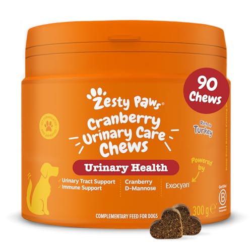 Zesty Paws Urinary Care Chews for Dogs | Supports Urinary Tract & Immune Function, Maintain pH Balance, Helps Incontinence | Contains Cranberry Powder, D-Mannose, Vitamins C| Turkey Flavour | 90 Chews