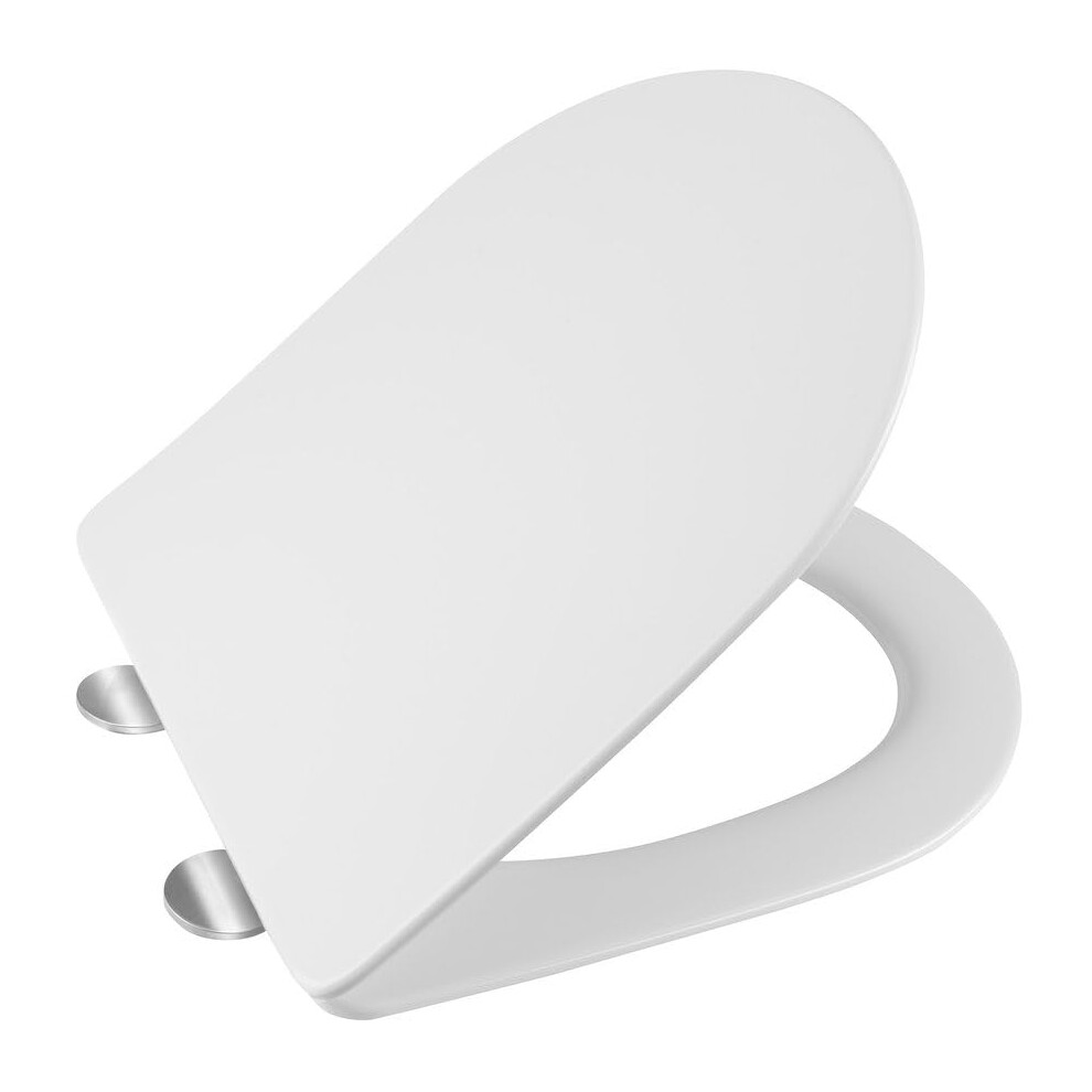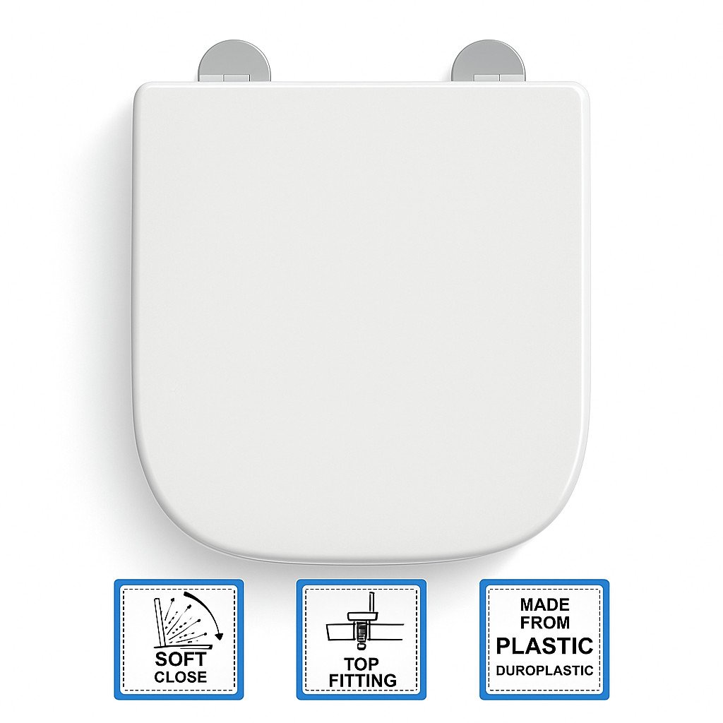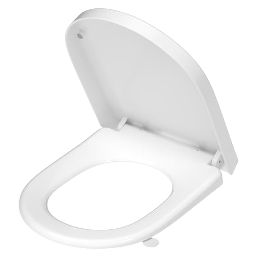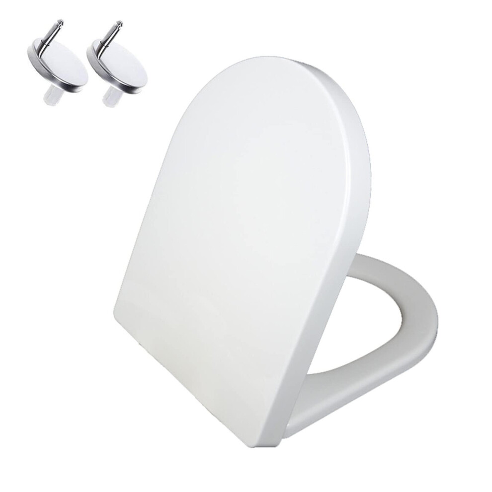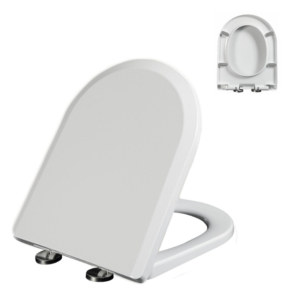 D-Shape Soft Close Toilet Seat - Quick Release Top Fixing White Duroplast Lid with Adjustable Hinges
