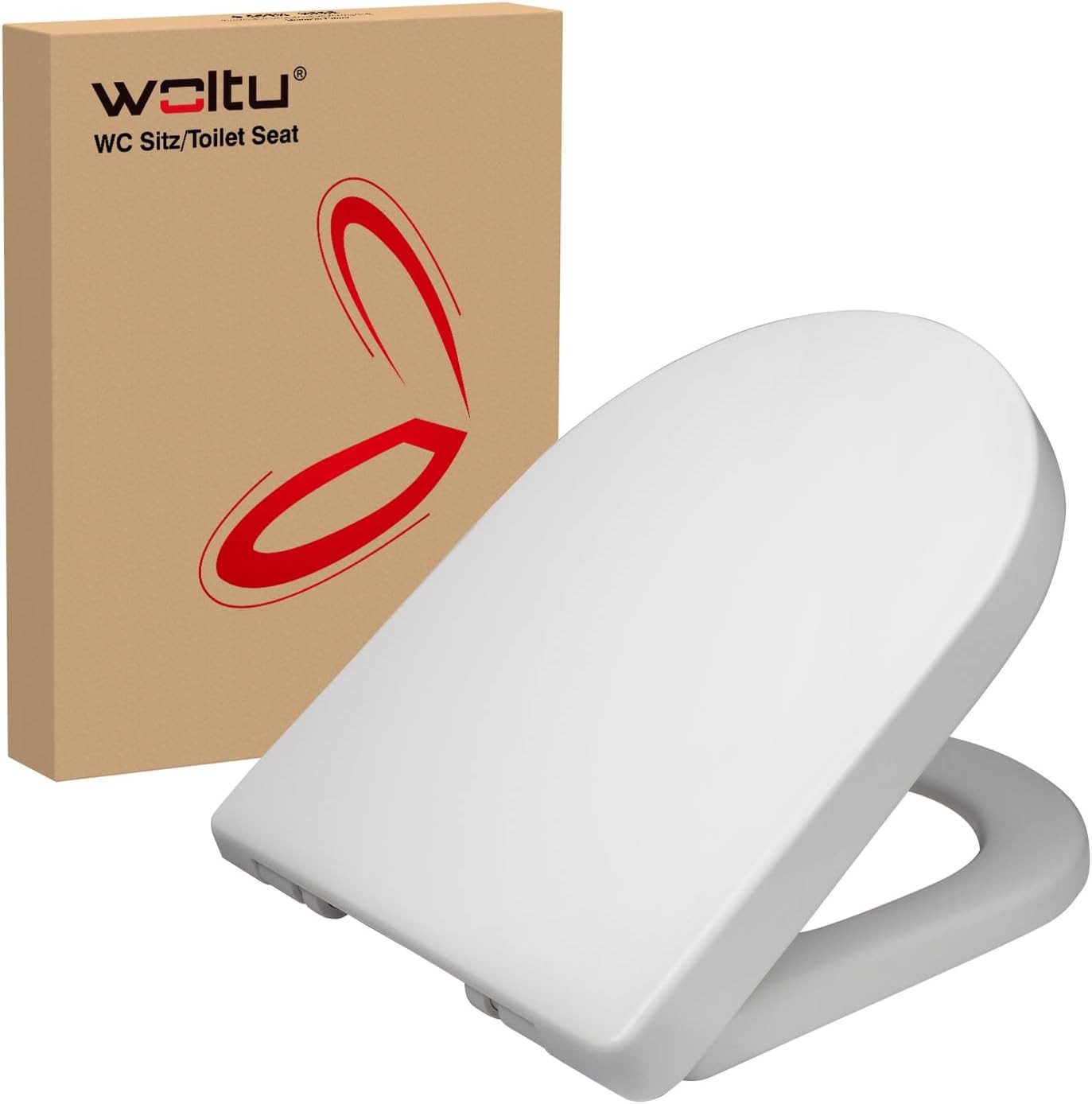 WOLTU D Shape Toilet Seat,Soft Close Toilet Seat with Quick Release White, Dual