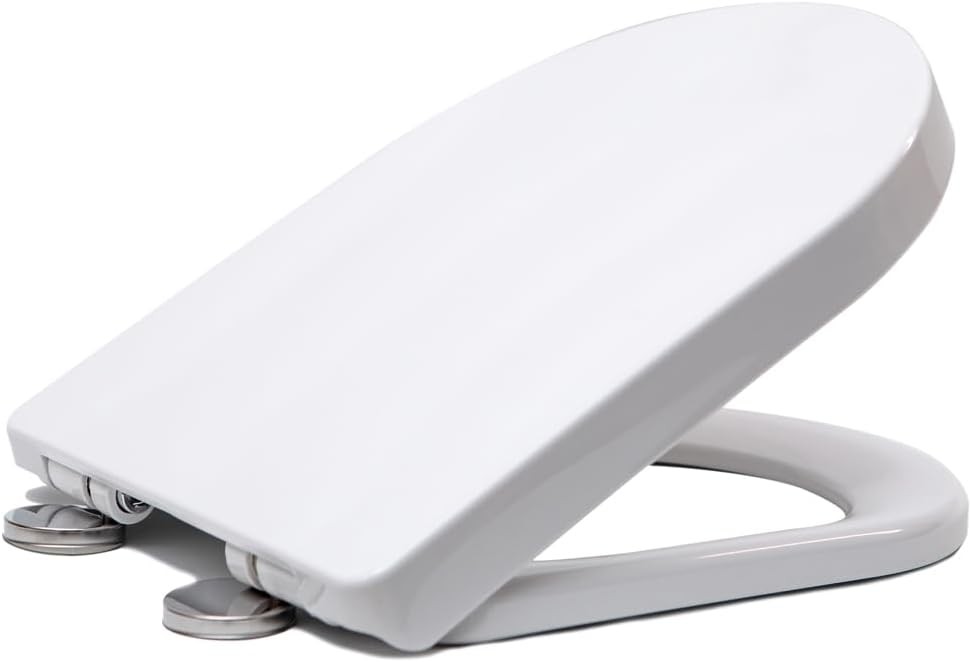 Premium D Shape Soft Close Toilet Seat with Adjustable Stainless Hinge, Quick R