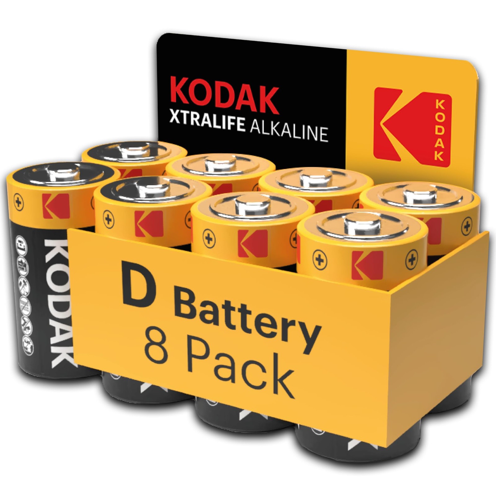 Kodak Xtralife D Cell Batteries 8-Pack, 1.5V D Size Alkaline Battery D