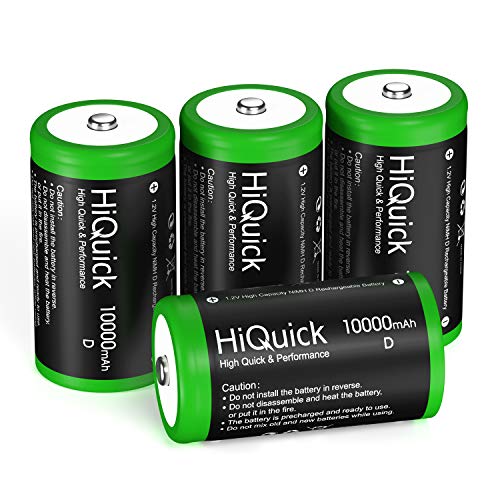 HiQuick 10000mAh D Rechargeable Batteries - 1.2V Huge Capacity Size D Battery, Ni-MH D Cell Batteries Pack of 4
