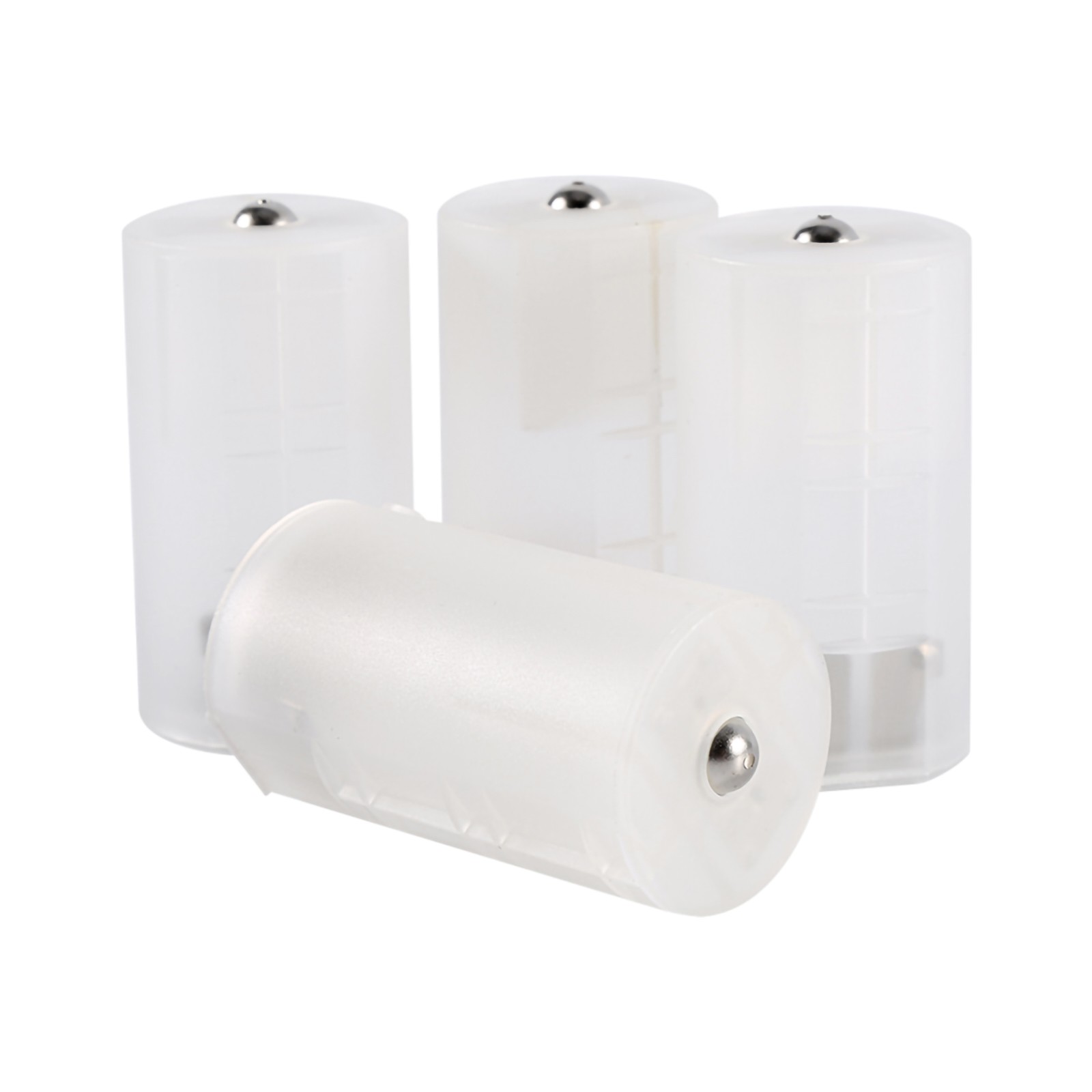 4Pcs AA to D Size Battery Adapter Battery Converter Holder Metal Contact Clear